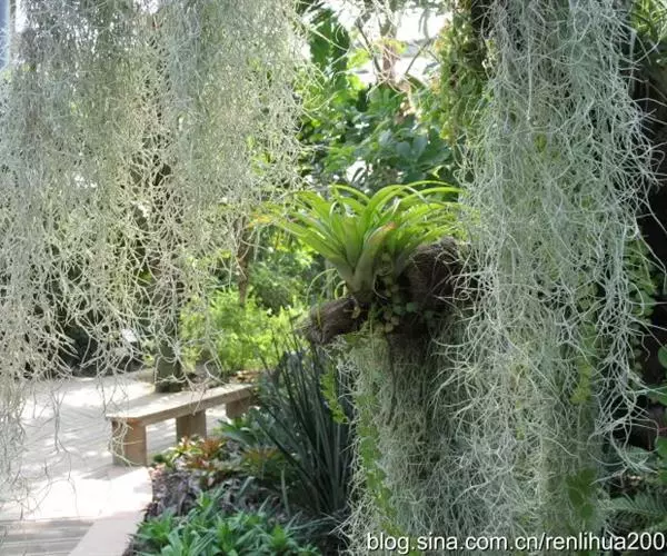 松萝凤梨,凤梨科,铁兰属,本种耐寒力极强,弗吉尼亚自然生长的成年植株可以忍受零下17度短期低温。北纬35度以南的秦岭淮河流域东部低地,利用北美落羽杉造林后,可引种弗吉尼亚种源成年松萝凤梨,让其攀爬在林内,能够自然过冬。人工栽培可悬空吊垂任其向下生长,外形似地衣类的松萝。