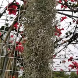 松萝凤梨 像一顶假发,像一团胡须,高悬在半空中,不见水土滋养,甚至连根在哪儿也看不到,这就是神奇植物松萝凤梨。它靠叶子上的鳞片吸收空气中的水分与养分,故又名“空气草”。