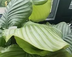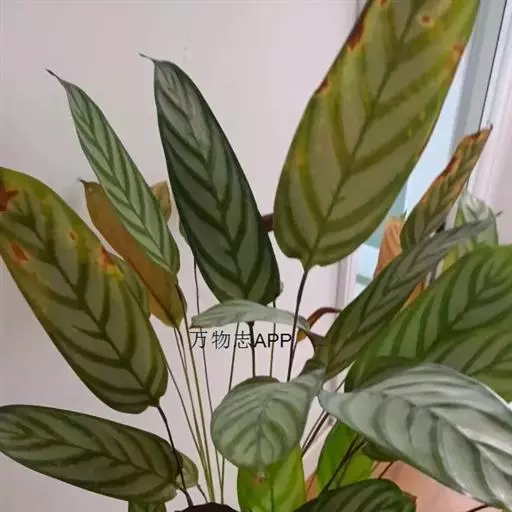 竹芋对水的要求比较高,不同品种的竹芋对水分的需求也不一样。‘青苹果’竹芋和‘天鹅绒’竹芋叶片薄且大,浇水间隔时间短,‘豹纹’竹芋叶片厚且较细长,浇水间隔时间长。