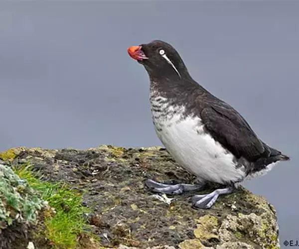 角嘴海雀,是海雀科、角嘴海雀属的中型海鸟,体长32-41厘米,嘴短而粗呈圆锥状、橙色。夏羽上嘴基部…