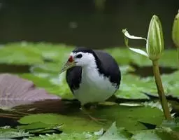 白腹海鹦,前趾间有蹼膜,后趾缺如。翅窄而短小,尾短。体羽黑白二色,雌雄羽色相似