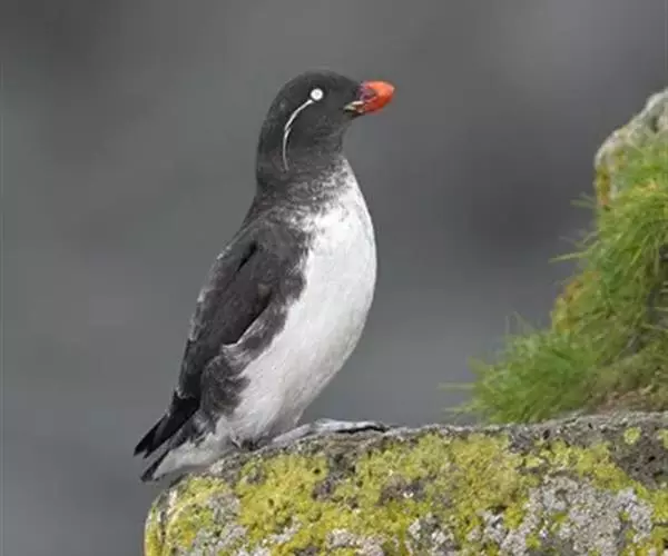 北极海鹦是海雀科的一种海鸟,体长26-38厘米,体重约490克。冠为黑色,脸颊灰色,腹部白色。喙大…