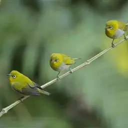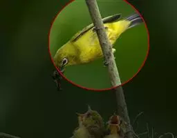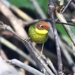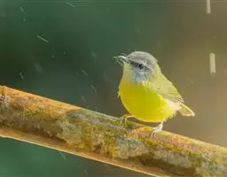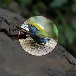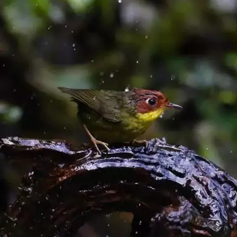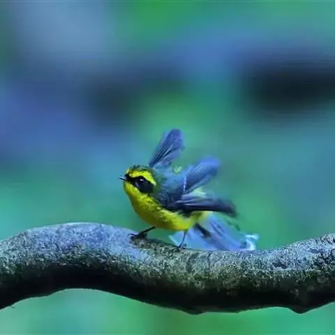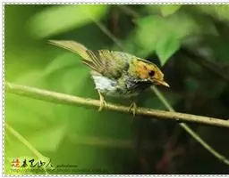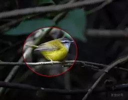 黑脸鹟莺:体长10厘米,是有特色的体小而多彩的莺鸟。粗眉纹,颏、喉及尾下覆羽黄色,脸罩黑,…