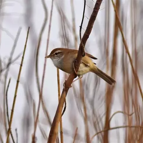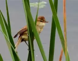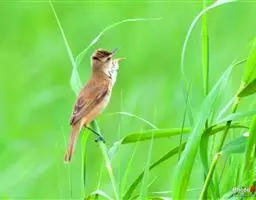 大苇莺:属小型鸟类,雌雄两性羽色相似。眉纹淡棕黄色;眼褐色;翅褐色具淡棕色的边缘;尾羽亦褐色,…