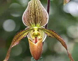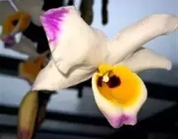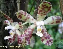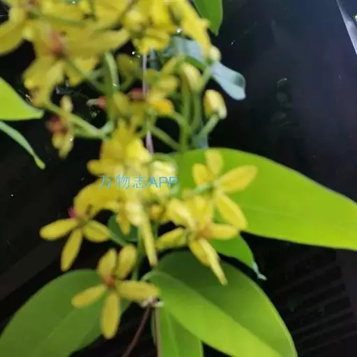 小金蝶兰(O.varicosum),花黄绿色,花径3厘米。