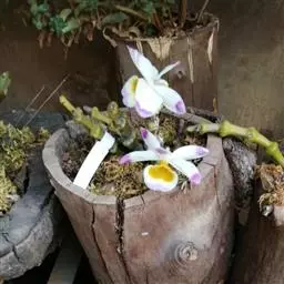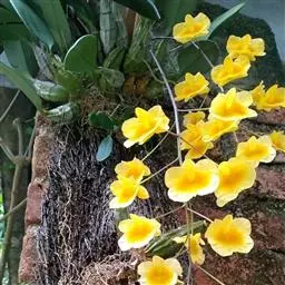 盆栽文心兰常用15厘米盆,也可用蕨板或蕨柱栽培。常用基质为碎蕨 蜜糖文心兰 根40%、泥炭土10%、碎木炭20%、蛭石20%、水苔10%。种植时要用碎石或碎砖垫花盆底部1/3左右,有利于透气和排水。开花植株栽植在花谢后进行最好,未开花植株在萌芽前进行,这样有利于文心兰新根生长。5~10月为文心兰的生长旺盛期,每半月施肥1次。冬季休眠期可停止施肥和浇水,增加喷水,提高空气湿度即行。液施肥料流失严重,每半月可用0.05%~0.1%复合肥喷洒叶面加以补充。开花后要及时摘除凋谢花枝和枯叶。文心兰基本采用盆栽。盆栽植料与栽培蝴蝶兰的植料相似。如水苔、碎蕨根、木屑、木炭、珍珠岩、碎砖块、泥炭土等。这些植料组合应用效果好,如以细蕨根40%,泥炭土10%,木炭20%、珍珠岩或蛭石20%、碎石和碎砖块10%混合调制效果好。种植时要用碎石或碎砖垫花盆底部1/3左右以利通气和排水。栽培的花盆可用塑料盆、素烧盆、瓷盆等。栽培2~3年以上的文心兰,植株逐渐长大并长出小株,根系过满,要及时换盆。换盆通常在开花后进行,未开花植株,可选择在生长期限之前进行。