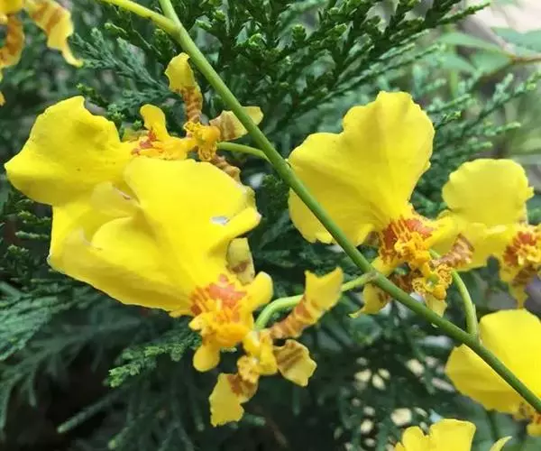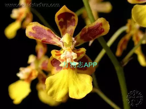 豹斑文心兰(O.Pardinum),花鲜黄色,具棕色斑纹。