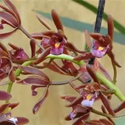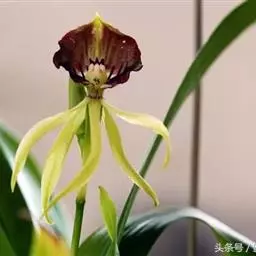 大花文心兰(O.Macranthum),花大,花径10厘米,花瓣黄色,萼片棕色、波状。