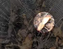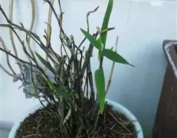 当中苗经过5~6个月后,长至6~8个假鳞茎,根系将木炭块很好包住,此时应为中苗换盆。