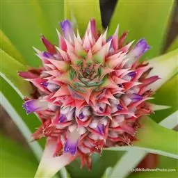 在自然状态下,凤梨在有足够叶片数、株龄合适或遇到低温时都会自然开花。在规模化的温室生产中,必须制订详细的生产计划,做好催花处理工作,使凤梨在市场热销时期开花。催花前的准备工作催花处理前需要做一些准备工作,使凤梨对“催花”变得敏感,以达到理想的催花效果。首先,改施高钾低氮的混合肥料;其次,在催花前3周,停施任何肥料,只浇清水;再者,正式催花时,需将凤梨叶杯中的积水排空。催花处理常用的催花方法是用乙炔饱和溶液进行催花处理。此法可用于除铁兰属以外的所有观赏凤梨。具体处理方法: