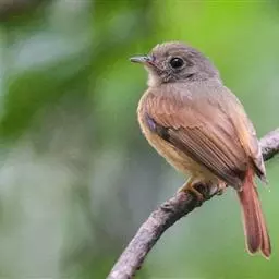 棕尾褐鹟:体重9-16克;体长109-122毫米,是一种体型略小的红褐色鹟。眼圈皮黄,喉块白,…