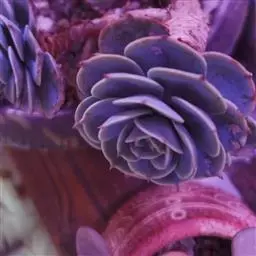 紫珍珠是景天科石莲花属的多年生肉质草本植物。植株中小型;叶片肉质,匙形,呈莲座状紧密排列;叶片粉紫色,…