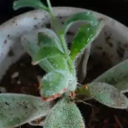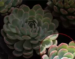 昂斯洛叶片圆匙状,先端急尖,呈莲花状紧密排列。春末开花,可能同时抽生出几个花箭,穗状花序,小花钟型,橙色。昂斯洛的色系极其丰富,橙色、粉色、嫩黄色、嫩绿色均可达成,出状态的昂斯洛叶片像中心包拢,层层叠叠,配合其糖果般的色泽,真是美极了。没有状态的昂斯洛则叶片平摊,颜色也为普通的浅绿色,整体状态有点像薄叶版的白牡丹。