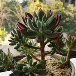 魅惑之宵是景天科拟石莲花属的多肉植物。魅惑之宵叶片莲座型密集排列,底座粗壮,茎干随着生长而逐渐长粗,…