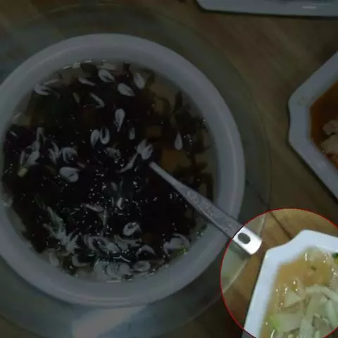 1、将豆腐干切成细丝,加少许姜丝、盐,用60左右的温水浸泡片刻,再放入开水中略焯捞出备用;