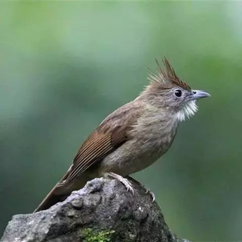 白喉冠鹎:体长20-25厘米。头顶红褐色,有长而细的羽冠、红褐色,头侧灰色。上体橄榄绿黄色,…