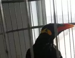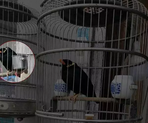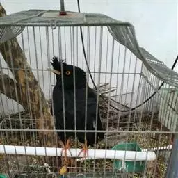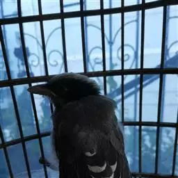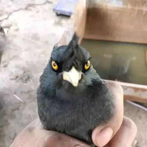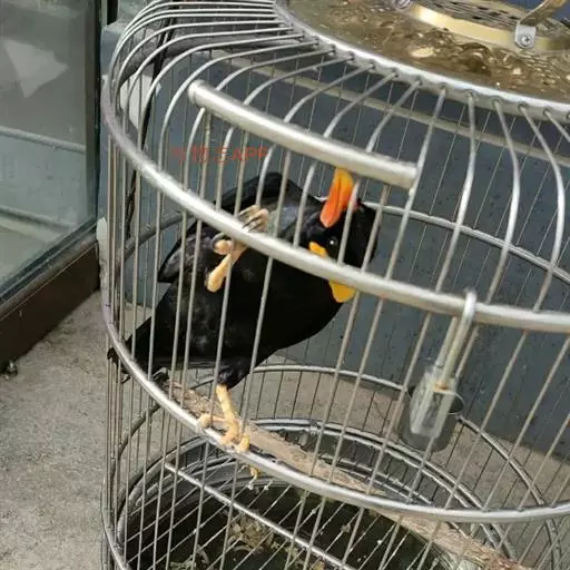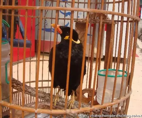 7、鹩哥不应该一直放在笼子里,要让它学会在人手中玩耍,这样就可以向杂技方向发展,而且可以锻炼它过笼的能力,换洗澡笼也方便。