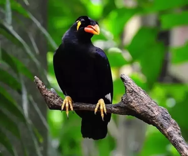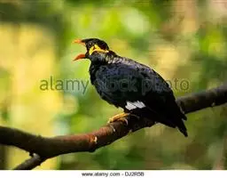 鹩哥(拉丁学名:Gracula religiosa):体形较大,体重165-258克,体长234-304毫米。全身大致为黑色具紫蓝色和铜绿色金属光泽。特征为头侧具桔黄色肉垂及肉裾,雌雄相似。善鸣,叫声响亮清晰,能模仿和发出多种有旋律的音调。