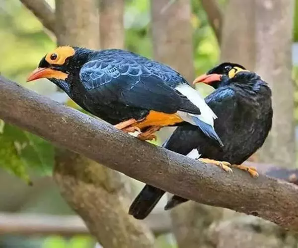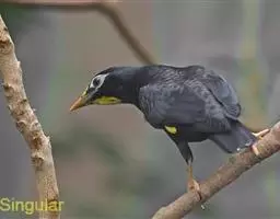 金冠树八哥为椋鸟科树八哥属的鸟类。体长约23厘米,闪辉黑色。特征为具翼斑及颏黄色,脸颊裸露皮肤粉黄色。…