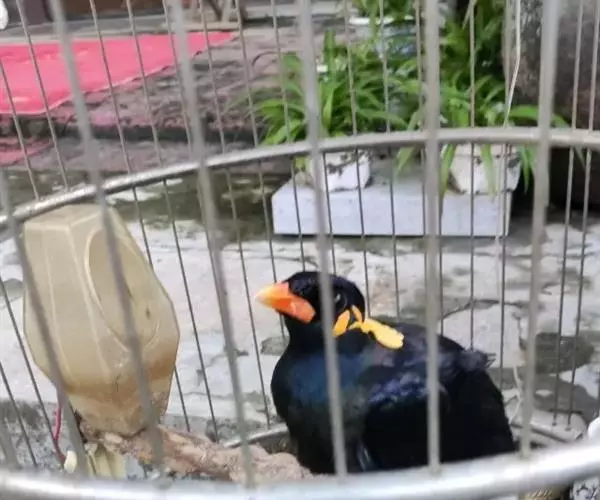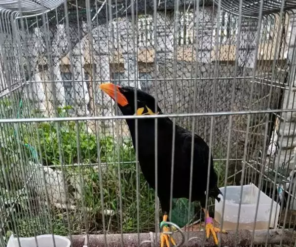 3、挑鹩哥时,用手拍打笼子,不跳,两眼炯炯有神的为好,再捉出来,身上肉不要掉的太多,否则容易夭折,