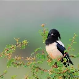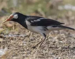 斑椋鸟:是中等体型的黑白色椋鸟,体长24厘米。头顶、头侧、翼斑、腰及腹部白色,喉、胸及上体余部黑色,…