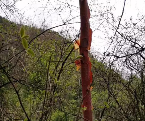 生长在九寨沟的红皮桦 整地:穴状整地以品字形配制,规格为40厘米×40厘米×30厘米。