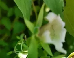 羊乳花,是多年生缠绕藤本。分布于中国东北、华北、华东和中南各省,生长在山坡灌木林下阴湿地区。多年生缠绕草本,根粗壮肥大,倒卵状纺锤形,茎圆形,着生于茎上的叶较小,互生,有短柄。花通常一朵生于枝端;花萼5裂,萼筒与子房结合;花冠蓝绿色或淡黄色,钟状,雄蕊5枝,花丝基部稍膨大;子房下位,3室;花柱短,柱头3裂。蒴果圆锥形。