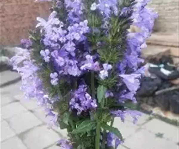 轮伞花序具3-7花,腋生,常偏向于一侧,具长不及1毫米的总梗,组成通常长4厘米的伸长的顶生穗状花序,在上部者较密集,在下部者远离,有时在主轴顶端由于侧生花枝紧缩而聚集成圆锥花序,此时花序甚伸长,长达10厘米;苞片及小苞片线状钻形,锐尖,比花梗长,长3-5毫米,被微柔毛;花梗长0.5-1.5毫米,与总梗均被微柔毛。花萼管状,连齿长约7.5毫米,常具色泽,外面在脉上被微柔毛,脉间具腺点,内面无毛,显著15脉,齿间凹陷由于二脉连结而多少呈瘤状,萼齿5,三角状披针形,长约2.5毫米,先端具短刺尖头。花冠浅蓝至紫色,长约1厘米,外面除下唇中裂片及冠筒基部外均被微柔毛,内面无毛,冠筒长约7.毫米,几不超出花萼,冠檐二唇形,上唇卵圆形,直伸,长约2.5毫米,先端2裂,下唇开张,3裂,中裂片宽大,宽超过二侧裂片,侧裂片卵圆形。雄蕊4,前对较长,明显伸出花冠,后对较短,稍伸出花冠,花丝丝状,无毛,花药卵圆形,2室,室叉开。花柱略超出雄蕊,向前弯,先端相等2浅裂。花盘平顶。子房无毛。花期6月。