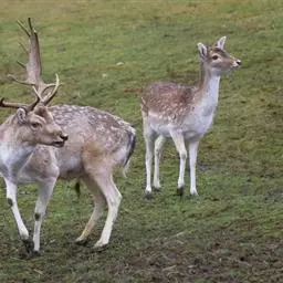 驯鹿(学名:Rangifer tarandus),又名角鹿。是鹿科驯鹿属下的唯一一种动物。体长100~125厘米,肩高100~120厘米。雌雄皆有角,角的分枝繁复是其外观上的重要特征。长角分枝繁复,有时超过30叉,蹄子宽大,悬蹄发达,尾巴极短。驯鹿的身体上覆盖着轻盈但极为抗寒冷的毛皮。不同亚种、性别的毛色在不同的季节有显著不同,从雄性北美林地驯鹿在夏季时的深棕褐色,到格林兰岛上的白色。主要毛色有褐色、灰白色、花白色和白色。花色中白色一般出现在腹部、颈部和蹄子以上部位