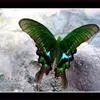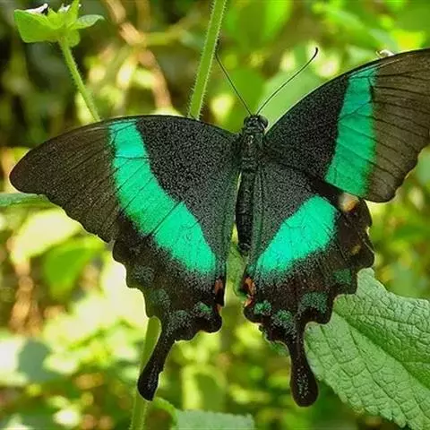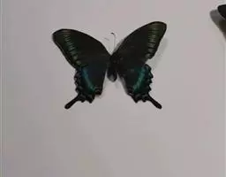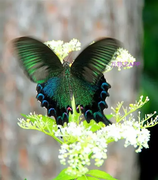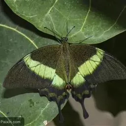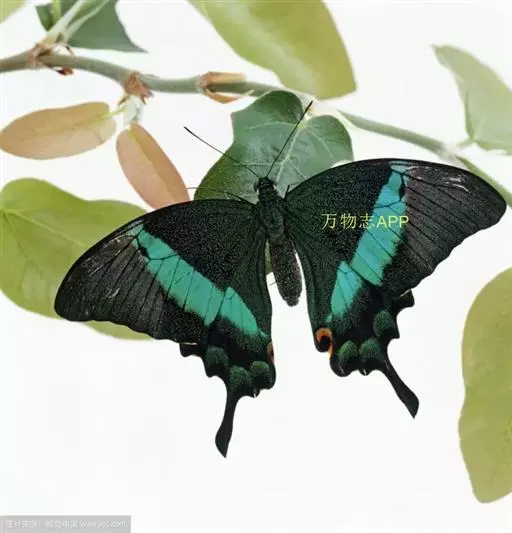 巴黎翠凤蝶中型凤蝶,躯体黑褐色,散布绿色亮鳞。后翅M3脉端有一明显叶状尾突。翅背面底色黑褐色,密布…
