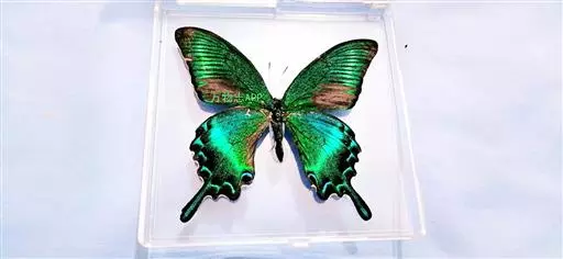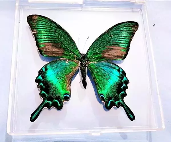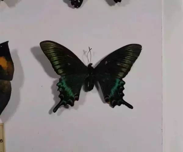 蛹的采集:绿带翠凤蝶的蛹会在寄主植物周围的枯树枝上找到,因蛹具有和环境相似的保护色,不易被发现。如发现要连蛹带树枝一并采回饲养。采时要观察蛹体表面是否被其它昆虫寄生,如发现蛹体表面有小孔,则表示已被寄生,已没有饲养的价值,就不要采集。