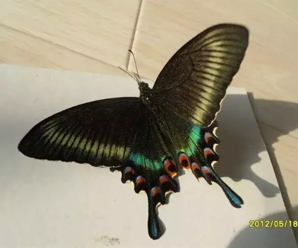 绿带翠凤蝶(雌) 国内分布:四川、云南、湖北、江西、北京、黑龙江、吉林、河北、台湾。