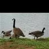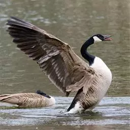 黑雁是雁形目鸭科黑雁属鸟类,又称黑鹅。头、颈、胸、嘴及脚黑褐色;虹膜褐色;背及两翼灰褐色;尾下覆羽白色;胸侧及胁部多近白色纹;颈部两侧各具一个特征性白色横纹,在颈前后断开,未能联成颈环。幼鸟颈部无白斑,而翅上多白色横纹。黑雁繁殖于北美洲、西伯利亚极地的苔原冻土带,越冬于南方沿海的草地及河口。在中国安徽也能见其身影。主要栖息在海湾、海港及河口等地,在冬季里大多出现在有耐碱植物生长的湖泊和水库周围,也出现在周围地势低洼的咸水湖和沿海地区,偶尔还出现在农田地里。性活跃,喜集群,常成群活动和栖息。主要以植物性食物为食。繁殖期在6-8月,雌鸟孵卵,雄鸟通常在距巢100米以内范围内守候警诫。雌鸟孵卵时常将头和颈朝地面平伸出去以降低高度。孵化期为22-28天。黑雁被列入中国林业局2000年8月1日发布的《国家保护的有益的或者有重要经济、科学研究价值的陆生野生动物名