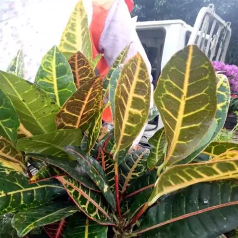变叶木属(Codiaeum A.Juss),大戟科,原有15 种,现经过园艺学家的选育现已有数百个品种之多 。它分布于马来西亚、太平洋群岛和澳大利亚北部,我国引入栽培的有变叶木C.variegatum(L. )Bl. 1种,南方各地常见栽培。