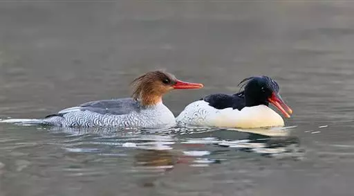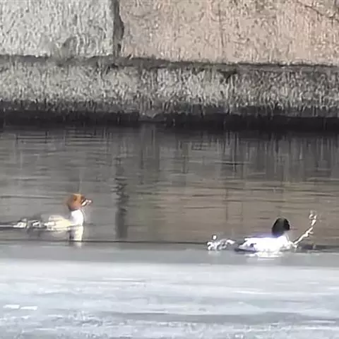 “鸟类大熊猫” 中华秋沙鸭现身浙江永嘉水域 中华秋沙鸭是第三纪冰川末期遗留下来的古老物种、国际自然保护联盟(IUCN)红色名录濒危物种,是中国一级重点保护野生动物,素有鸟中“大熊猫”之称。(段俊利/人民图片)