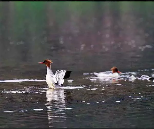 2020年4月4日,广西壮族自治区鹿寨县黄冕镇西岸水电站库区及嬉水觅食的画面,电站下游摄影爱好拍摄到七只中华秋沙鸭嬉水觅食的画面,这也是中华秋沙鸭首次现身鹿寨县域内。