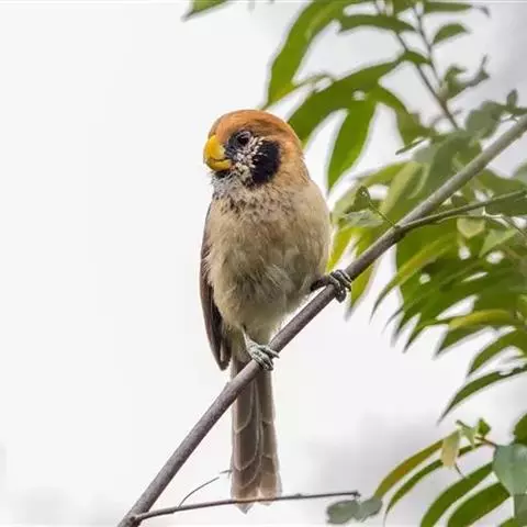 白眶鸦雀是莺科、鸦雀属小型鸟类,体长12-14厘米。嘴黄色、短而粗厚,头顶至后颈褐色沾棕具白色眼圈,…