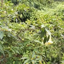 灌木,高0.3-3米;嫩枝常被短毛,枝圆柱形,灰色。叶对生,革质 栀子 ,稀为纸质,少为3枚轮生,叶形多样,通常为长圆状披针形、倒卵状长圆形、倒卵形或椭圆形,长3-25厘米,宽1.5-8厘米,顶端渐尖、骤然长渐尖或短尖而钝,基部楔形或短尖,两面常无毛,上面亮绿,下面色较暗;侧脉8-15对,在下面凸起,在上面平;叶柄长0.2-1厘米;托叶膜质。花芳香,通常单朵生于枝顶,花梗长3-5毫米;萼管倒圆锥形或卵形,长8-25毫米,有纵棱,萼檐管形,膨大,顶部5-8裂,通常6裂,裂片披针形或线状披针形,长10-30毫米,宽1-4毫米,结果时增长,宿存;花冠白色或乳黄色,高脚碟状,喉部有疏柔毛,冠管狭圆筒形,长3-5厘米,宽4-6毫米,顶部5至8裂,通常6裂,裂片广展,倒卵形或倒卵状长圆形,长1.5-4厘米,宽0.6-2.8厘米;花丝极短,花药线形,长1.5-2.2厘米,伸出;花柱粗厚,长约4.5厘米,柱头纺锤形,伸出,长1-1.5厘米,宽3-7毫米,子房直径约3毫米,黄色,平滑。果卵形、近球形、椭圆形或长圆形,黄色或橙红色,长1.5-7厘米,直径1.2-2厘米,有翅状纵棱5-9条,顶部的宿存萼片长达4厘米,宽达6毫米;种子多数,扁,近圆形而稍有棱角,长约3.5毫米,宽约3毫米。花期3-7月,果期5月至翌年2月。