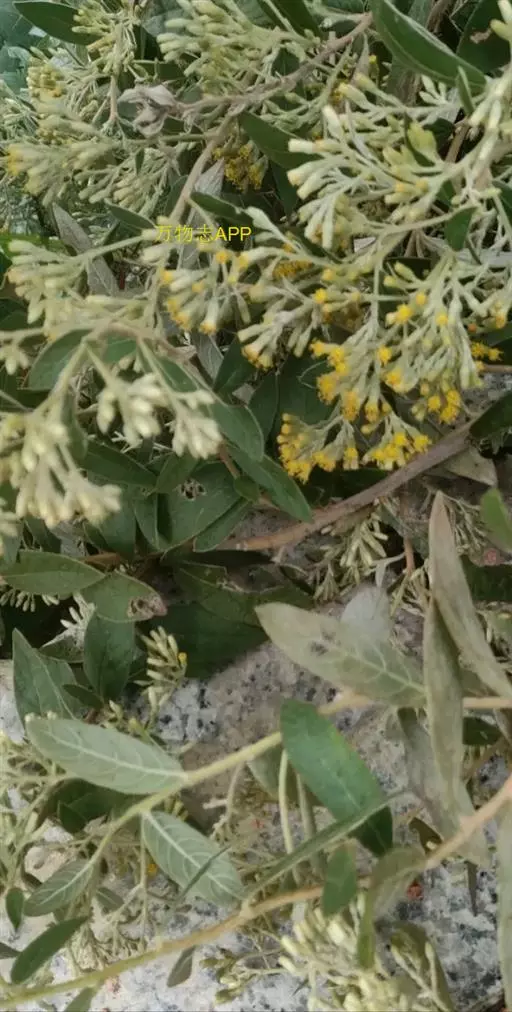 头状花序倒卵圆形,宽5-8毫米,多数密集于茎和枝端成聚伞圆锥花序;被绢状密茸毛。有线形的苞叶。总苞近钟形,长5-7毫米;总苞片约5层,线状披针形,外层较内层短3-4倍,顶端稍尖,外面被污白色或带褐色绢状茸毛。小花长4-5.5毫米;边缘的小花舌片短小,有3-4裂片,或无舌片而有4个退化雄蕊;中央的小花管状,上部有三角卵圆形裂片;冠毛污白色,约与管状花花冠同长,具20余个糙毛。