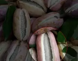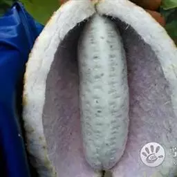 花雌雄同株,红色紫红色暗紫色绿白色或淡黄色,数朵组成伞房式的短总状花序;总花梗短,长8-20毫米,多个簇生于叶腋,基部为阔卵形的芽鳞片所包。雄花:花梗长10-15毫米,外轮萼片线状长圆形,长10-15毫米,宽3-4毫米,顶端钝,内轮的较小;花瓣极小,近圆形,直径不及1毫米;雄蕊直,长约10毫米,花丝圆柱状,药隔延伸为长约0.7毫米的凸头,药室线形,退化心皮小,锥尖。雌花:紫红色;花梗长3.5-5厘米,外轮萼片倒卵状圆形或广卵形,长14-16毫米,宽7-9毫米,内轮的较小;花瓣小,卵状三角形,宽0.4毫米;退化雄蕊无花丝,长约0.7毫米;心皮棍棒状,柱头头状,具罅隙。果紫色,长圆形,长5-9厘米,顶端圆而具凸头;种子椭圆形,长5-8毫米,厚4-5毫米,种皮褐黑色,有光泽。花期4-5月,果期7-8月。