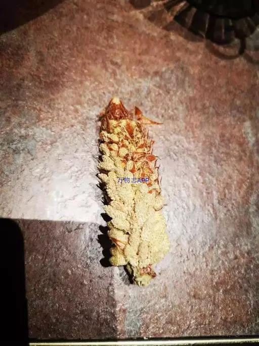 形态特征和地理分布:体长一般60-75厘米,最大可达1.2 梅花参 米,宽约10厘米,高约8厘米,是海参纲中最大的一种。背部肉刺很大,每3-11个肉刺的基部相连呈梅花状,故名“梅花参”;又因体形很象凤梨,故又称“凤梨参”。腹面平坦,遍布许多小而密挤的管足。口部稍偏于腹面,周围有触手20个。皮肤内的骨片很简单,一种是微小、重叠和密集的颗粒体;另一种是纤细和分枝2-3次、不规则的X形体。生活时体色艳丽,背面橙黄色或橙红色,散布黄色和褐色斑点;腹面带赤色;触手黄色。栖息于水深3-10米的珊瑚沙底;分布于太平洋西南部,我国主要产于南海的西沙群岛。