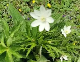 鹅掌草是毛莨科银莲花属的多年生草本植物。植株高40厘米;根茎近圆柱形;基生叶有长柄,叶草质,…