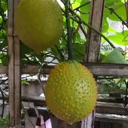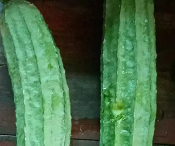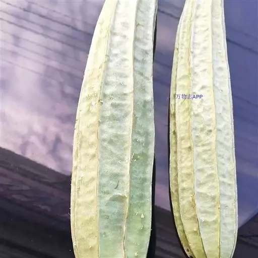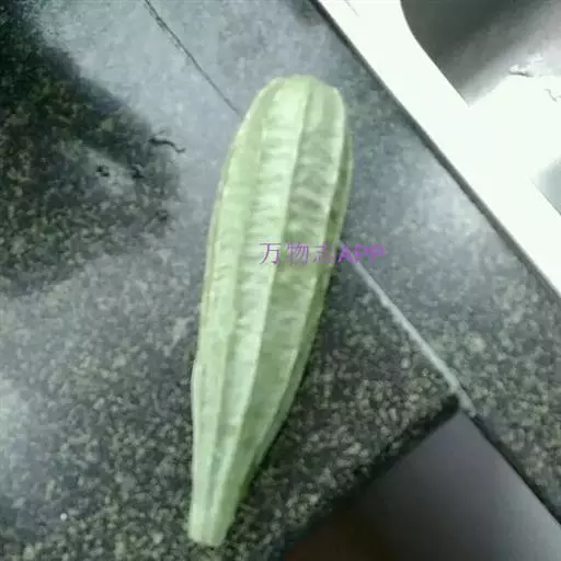 果实圆柱状或棍棒状,具8-10条纵向的锐棱和沟,没有瘤状凸起,无毛,长15-30厘米,径6-10厘米。种子卵形,黑色,有网状纹饰,无狭翼状边缘,基部2浅裂,长11-12毫米,宽7-8毫米,厚约1.5毫米。花果期:夏、秋季。