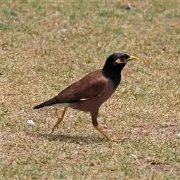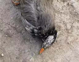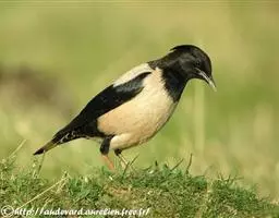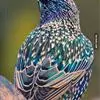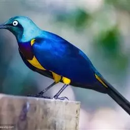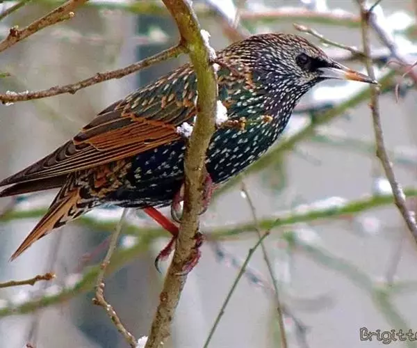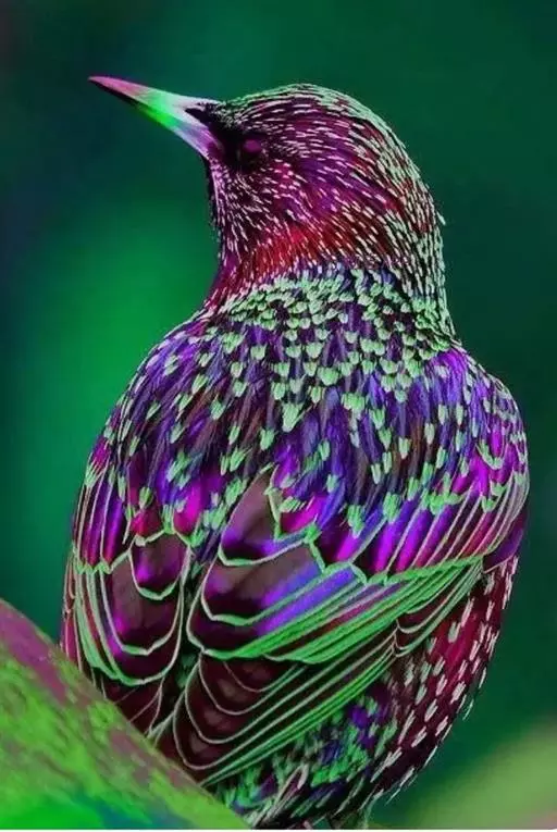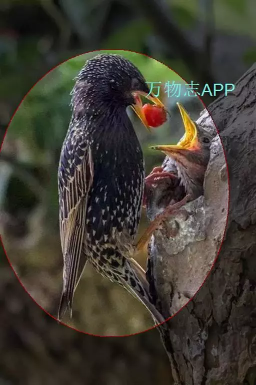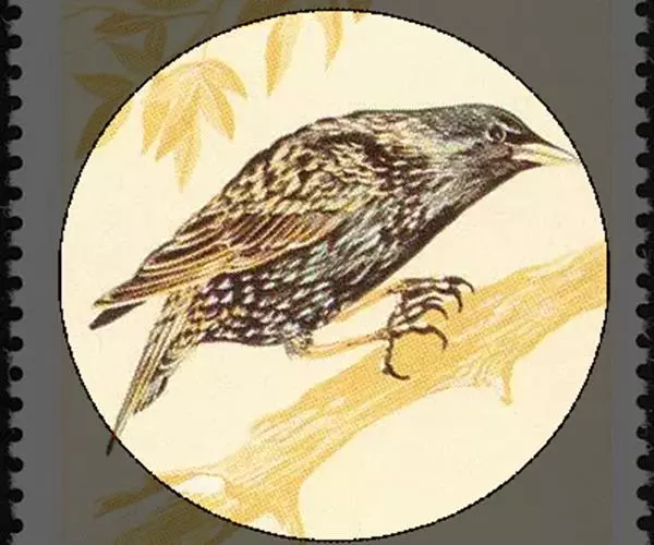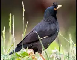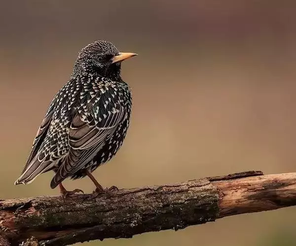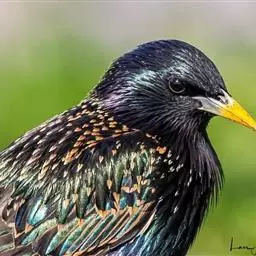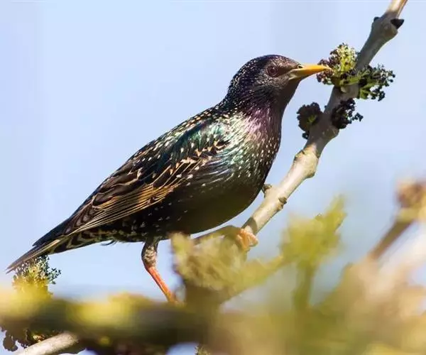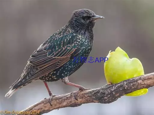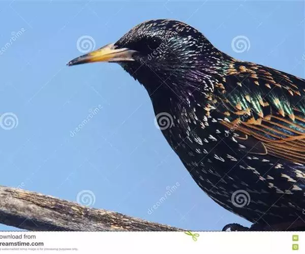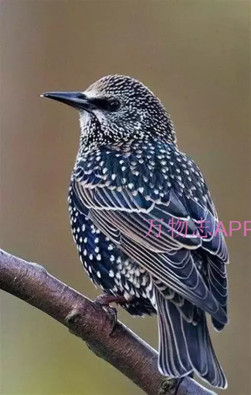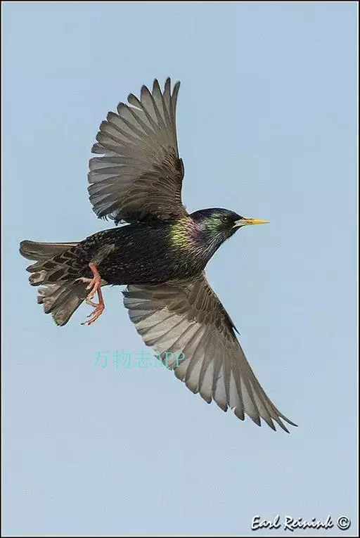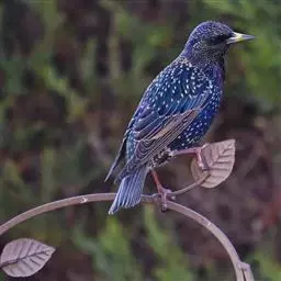 紫翅椋鸟(学名:Sturnus vulgaris):全长约20-24厘米,是中等体型的椋鸟。体羽新时为矛状,羽缘锈色而成扇贝形纹和斑纹,旧羽斑纹多消失。闪辉黑、紫、绿色。具不同程度白色点斑。虹膜深褐色;嘴黄色;脚略红。