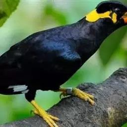 金冠树八哥为椋鸟科树八哥属的鸟类。体长约23厘米,闪辉黑色。特征为具翼斑及颏黄色,脸颊裸露皮肤粉黄色。…