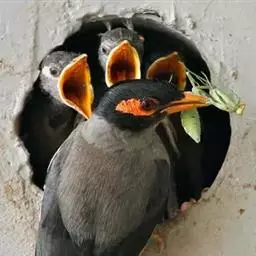 4-6月繁殖,往往集群营巢,巢营在村内尾檐下,峭壁裂隙、塔内以及天然的树洞中。巢以稻草、树叶、草根、芦苇、羽毛等编成。每年繁殖一次,每产4-7枚卵,卵色变化很大,呈乳黄色、翠绿或纯浅绿蓝色。孵卵期12天,亲鸟每天育雏95-328次,且有时一次衔数条虫返巢育雏。