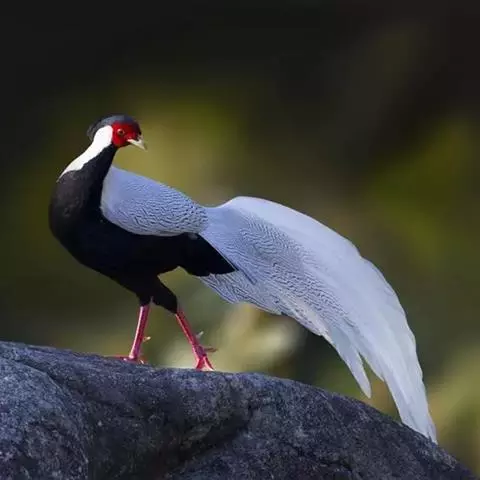 黑长尾雉大型鸡类,体长53~88厘米。雄较雌大。雄鸟通体紫蓝色,脸鲜红色,翅上有一条显著的白色翅斑…
