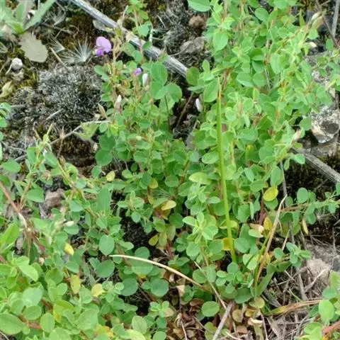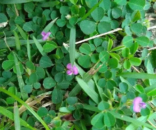 多年生草本。茎纤细,多分枝,直立或平卧,通常红褐色,近无毛;根粗,木质。叶为羽状三出复叶,或有时仅为单小叶;托叶披针形,长3-4毫米,具条纹,疏生柔毛,有缘毛;叶柄长2-3毫米,疏生柔毛;如为单小叶,则叶柄较长,长3-10毫米;小叶薄纸质,较大的为倒卵状长椭圆形或长椭圆形,长10-12毫米,宽4-6毫米;较小的为倒卵形或椭圆形,长只有2-6毫米,宽1.5-4毫米,先端圆形,少有微凹入,基部宽楔形或圆形,全缘,侧脉每边4-5条,不明显,不达叶缘,上面无毛,下面被极稀疏柔毛或无毛;小托叶小,长0.2-0.4毫米;顶生小叶柄长3-10毫米,疏被柔毛。