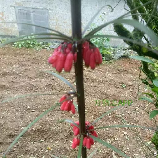 浆果红色,直径1-1.5厘米,具7-12颗种子。花期3-5月,果期9-10月。