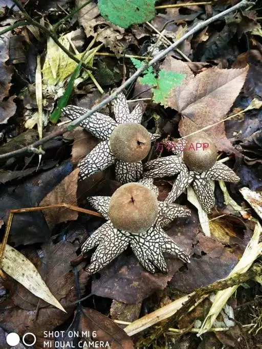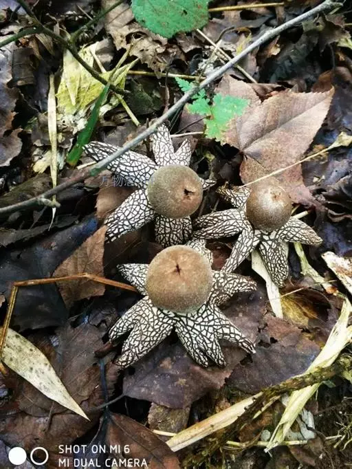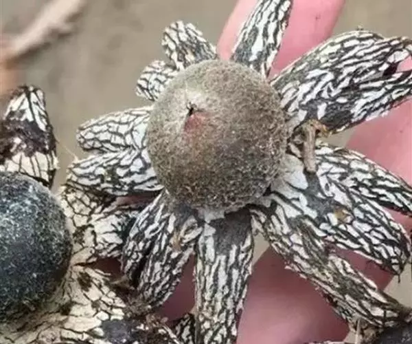 1、硬皮地星:子实体初呈球形,后从顶端呈星芒状张开。外包被3层,外层薄而松软,中层纤维质,内层软骨质。成熟时开成6至多瓣,湿时仰翻,干时内卷。外表面灰至灰褐色。内侧淡褐色,多具不规则龟裂。内包被薄膜质,扁球形,直径1.2-2.8cm,灰褐色。无中轴。成熟后顶部口裂。孢体深褐色。孢子球形,褐色,壁具小疣,径7.5-11μm。孢丝无色,厚壁无隔,具分枝,直径4-6.5μm。表面多附有粒状物。
